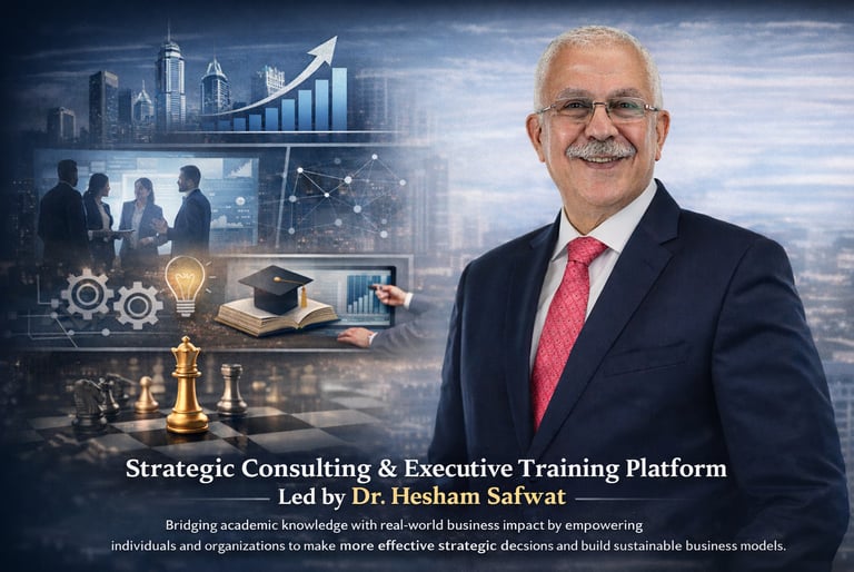 نحن منصة استشارية وتدريبية متخصصة يقودها د. هشام صفوت، تهدف إلى تمكين الأفراد والمؤسسات من اتخاذ قرارات استراتيجية أكثر فاعلية، وبناء نماذج عمل مستدامة قائمة على المعرفة، التحليل، والتطبيق العملي.